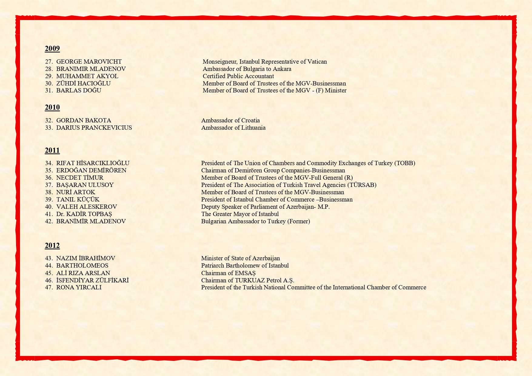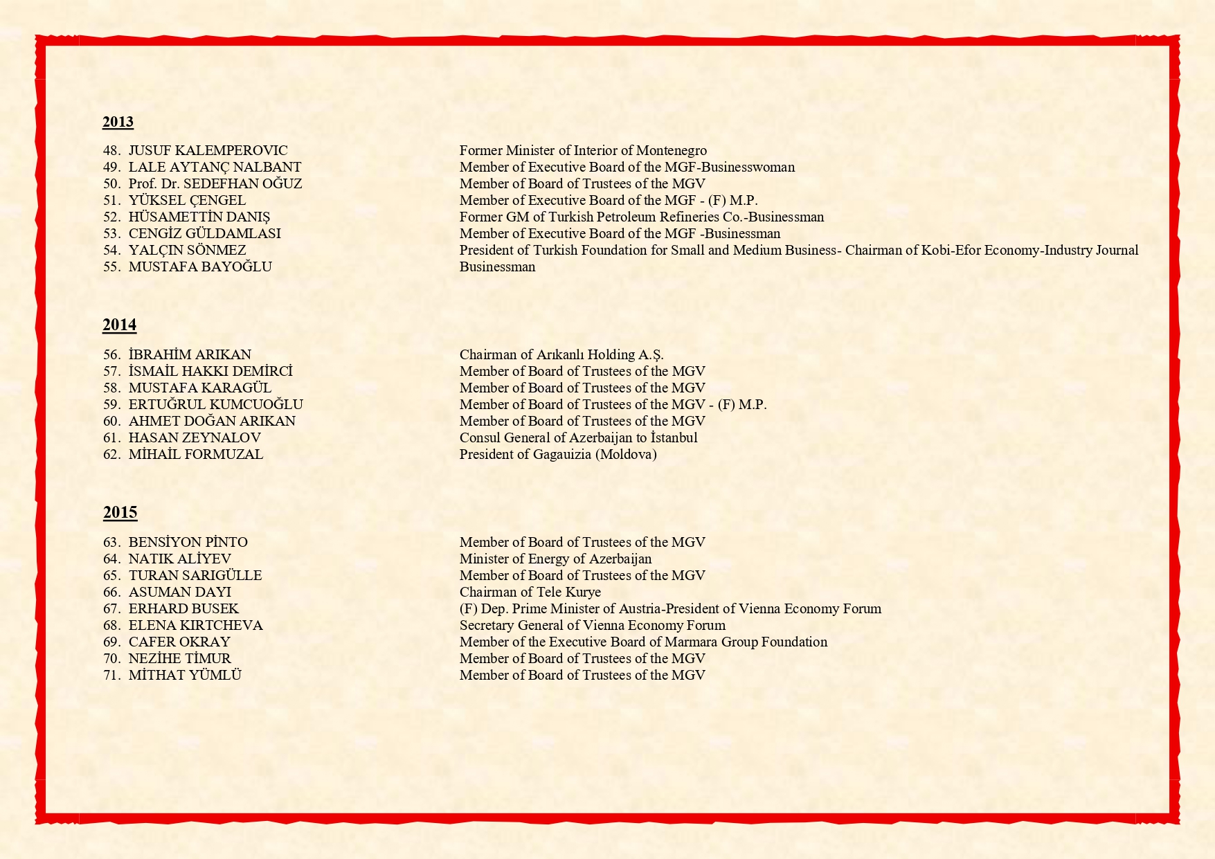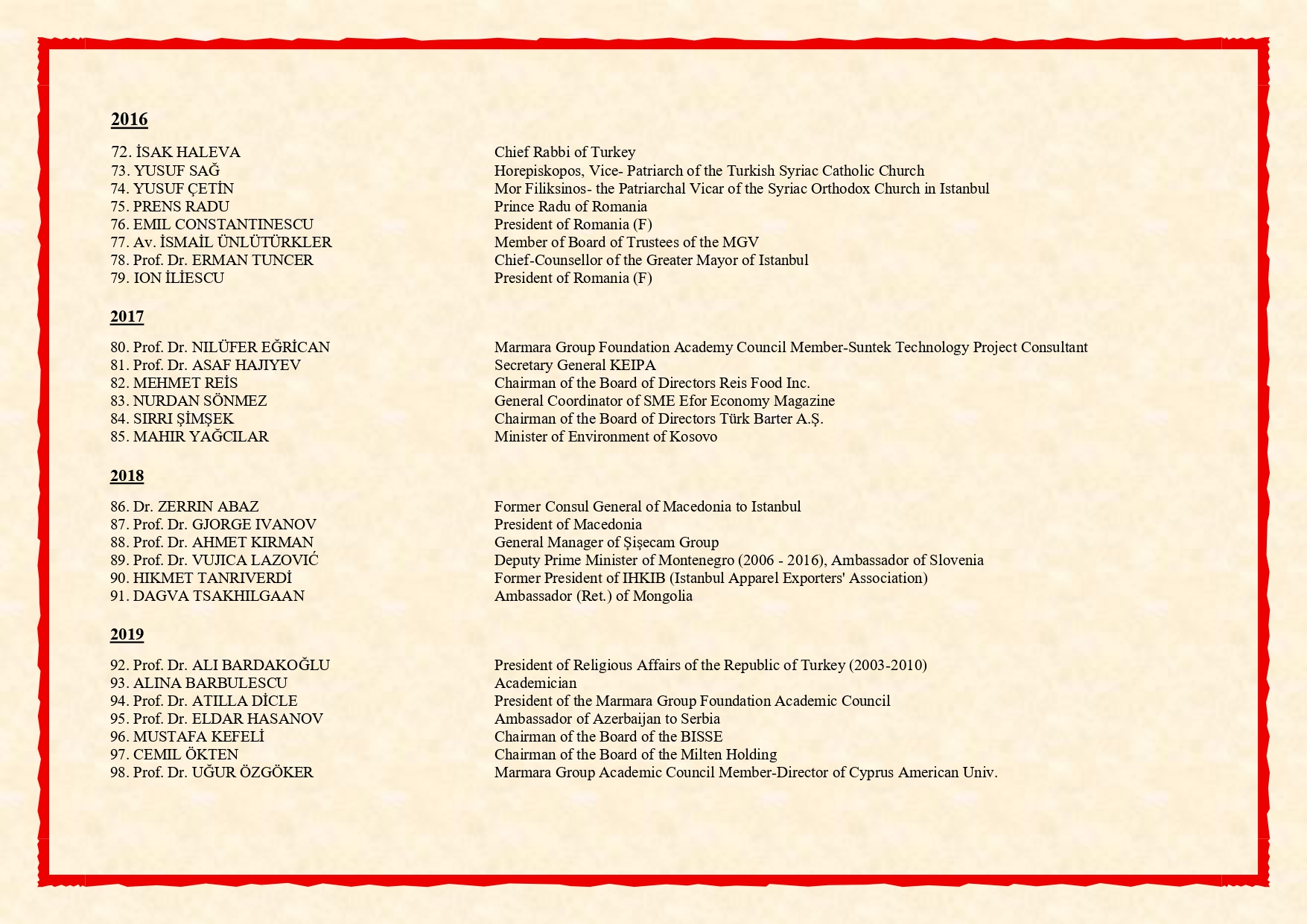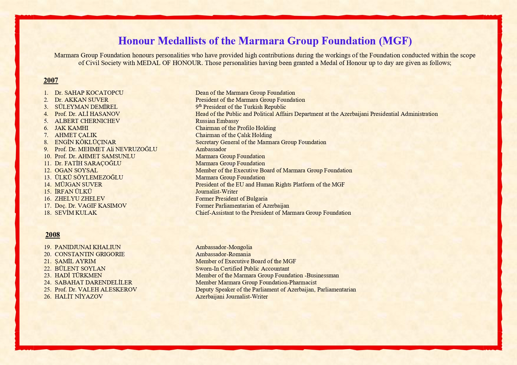 Honour Medallists of the Marmara Group Foundation (MGF)