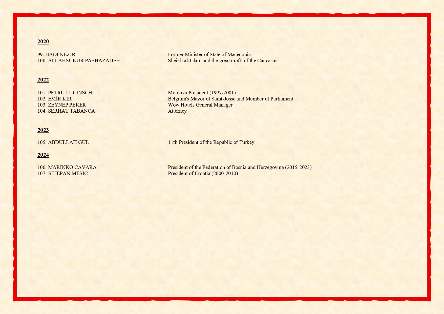 Other associates whom have been awarded with medal of honors from Marmara Group Foundation;