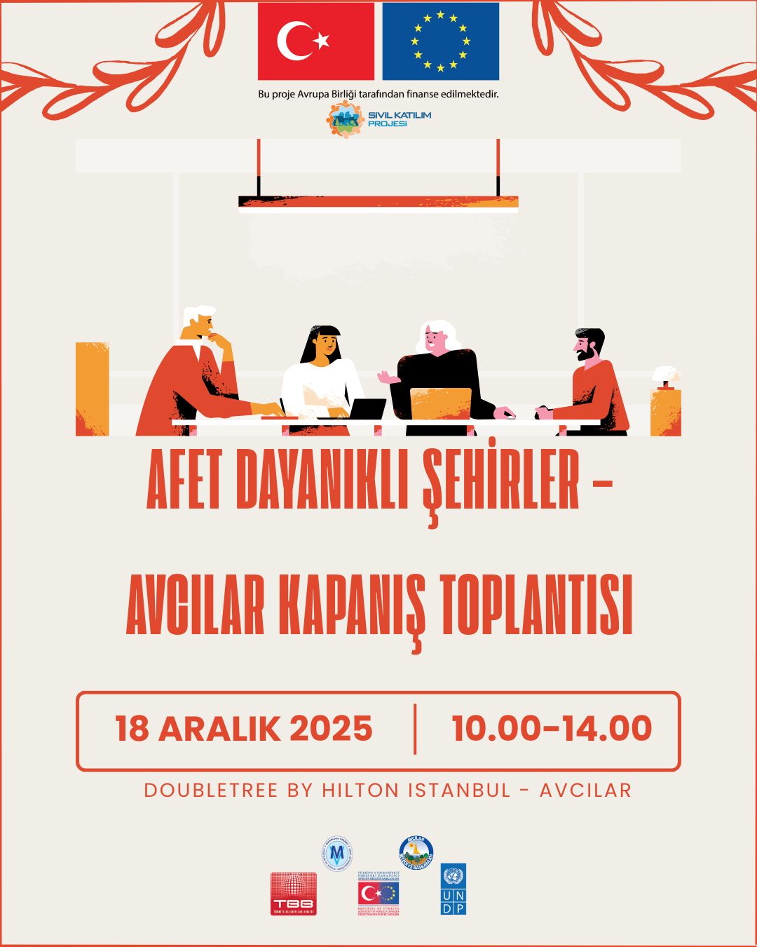 Afetlere karşı dirençli kentler oluşturmayı amaçlayan Afet Dayanıklı Şehirler – Avcılar Projesi’nin kapanış toplantısı, 18 Aralık 2025 tarihinde Hilton Otel Avcılar’da gerçekleştirilecek.