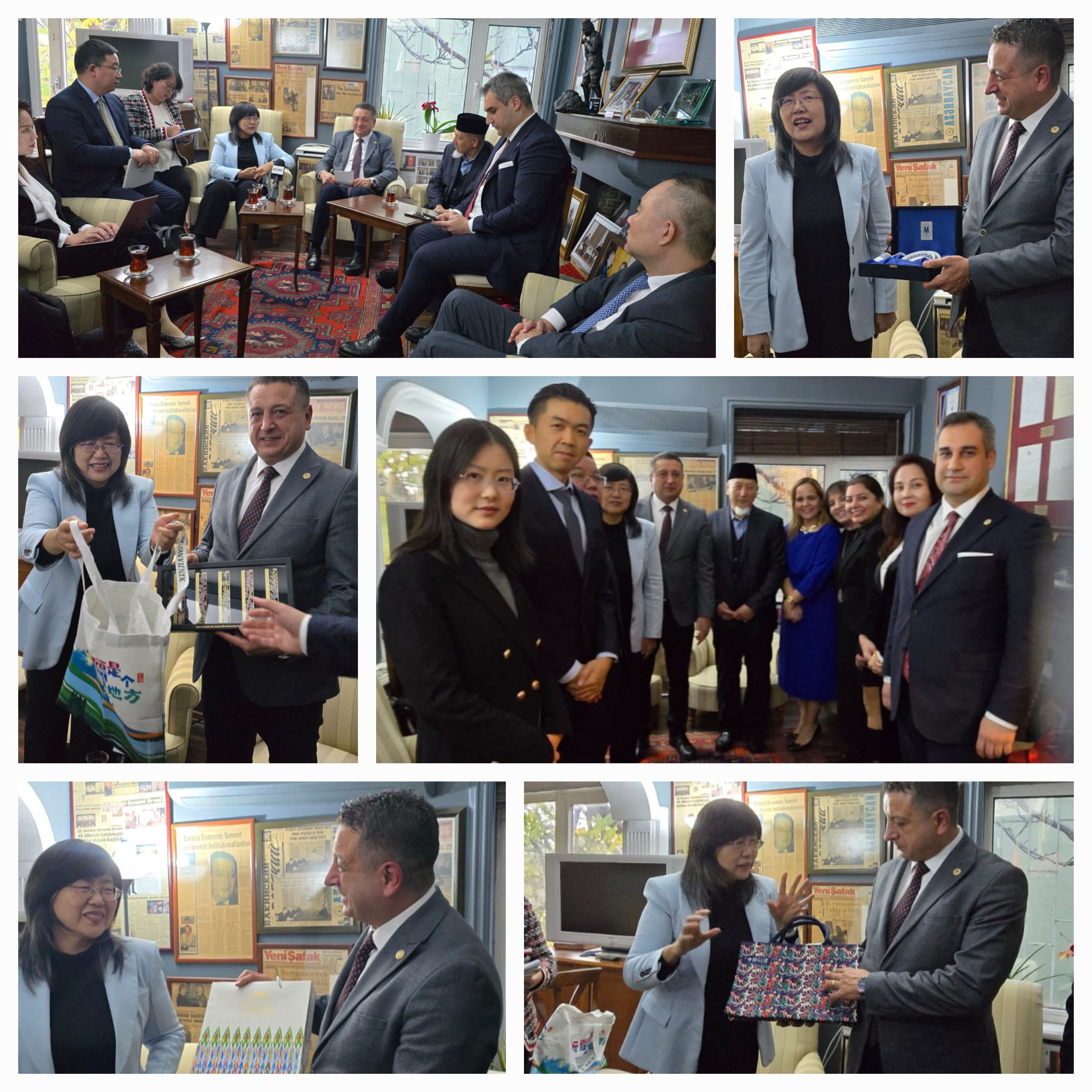 Chinese Academicians consisting of Prof Dr Hou Jvfeng, Prof Dr Ma Jirong, Prof Dr Kama Ayunuer, Prof Dr Zang Dengke from Xinjiang University, Prof Dr. Cao Wei from Lanzhou University, Mei Yining from Xinjiang University Administration and Wei Zhenzong from the Consulate General of the People's Republic of China in Istanbul met with Marmara Group Foundation Secretary General Sezgin Bilgiç, Executive Council Member Mahmut Saklı, Board of Trustees Members Prof Dr. Figen Yıldırım and Elif Arıkan at Marmara Group Foundation.