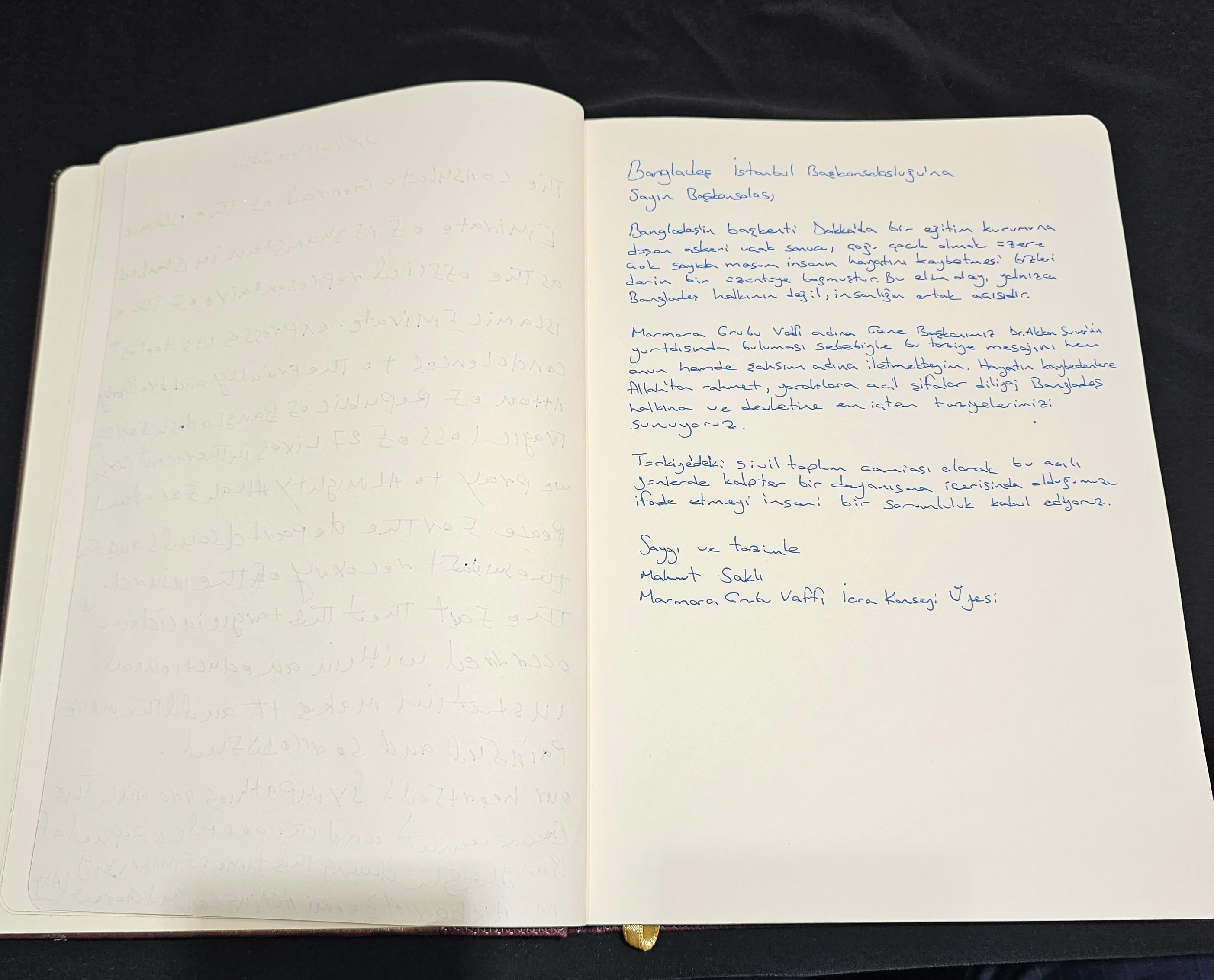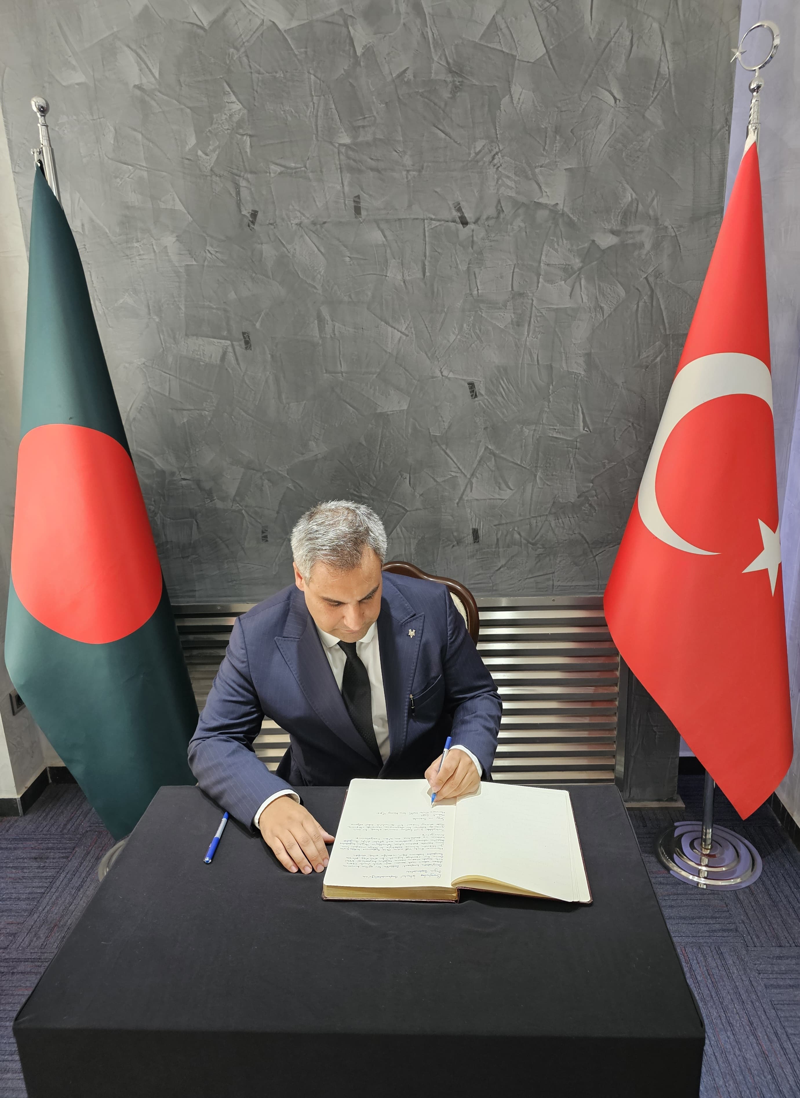 Mahmut Saklı wrote in the Book of Condolence: “We are deeply saddened by the tragic loss of many innocent lives, most of whom were children, as a result of a military aircraft crashing into an educational institution in Dhaka, the capital of Bangladesh. This tragic event is not only a sorrow for the people of Bangladesh, but a shared grief for all humanity.