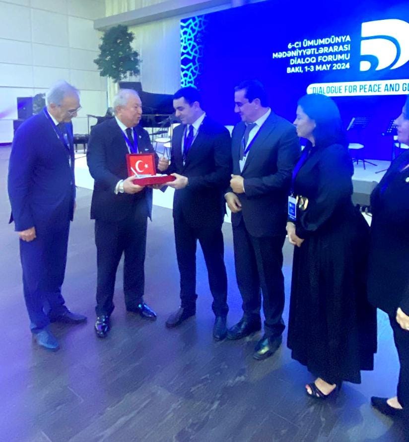 6. Dünya Kültürlerarası Diyalog Forumu çerçevesinde Bakü'de bulunan Dr. Akkan Suver, Belgin Tanrıverdi, Elif Arıkan Can ve Abuzer Sarı'dan oluşan Marmara Grubu Vakfı Heyeti'ni Azerbaycan Kültür Bakanı Adil Karimle kabul etti.