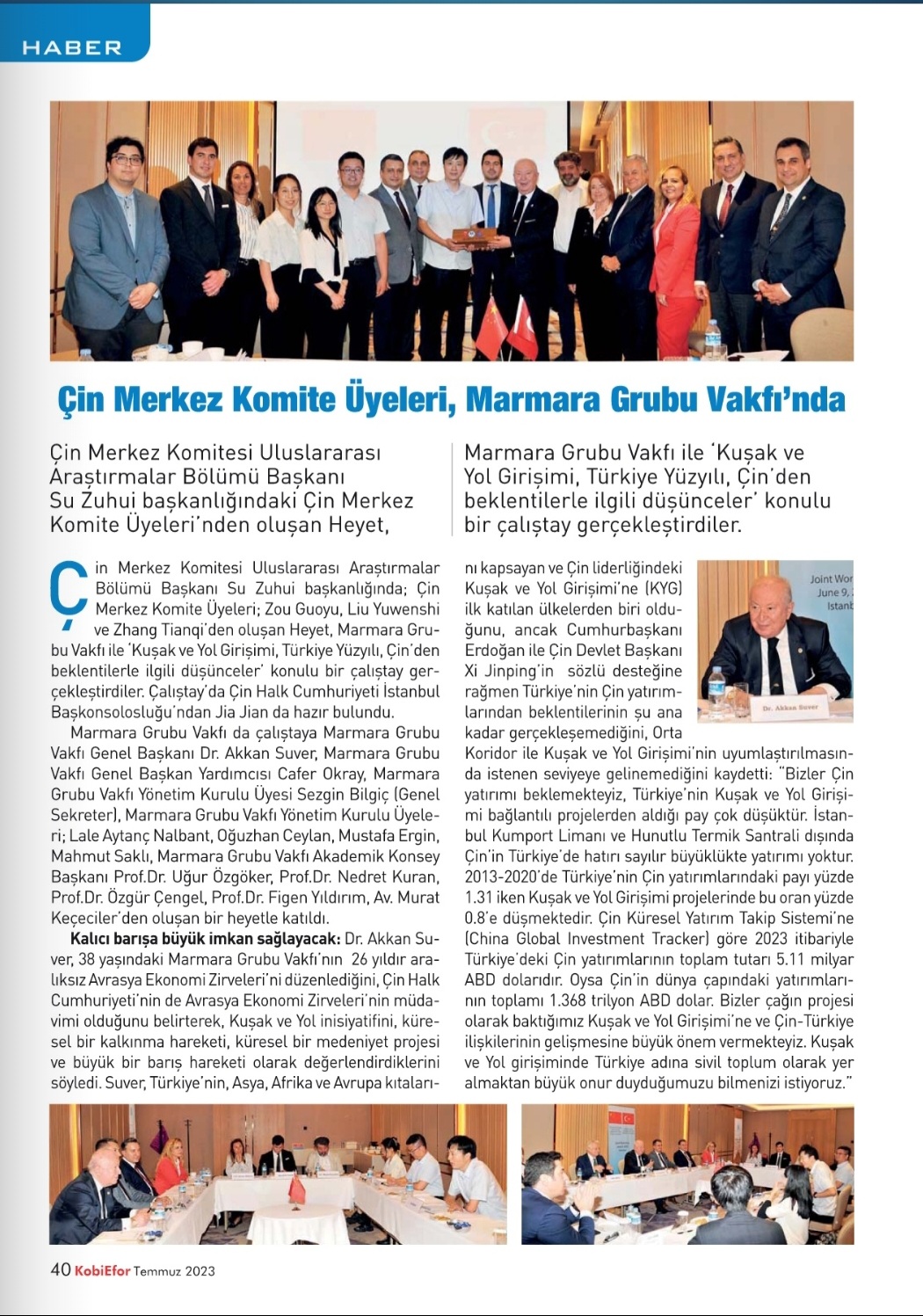 Uluslararası bir düşünce kuruluşu olan Marmara Grubu Vakfı 38 yaşındadır. 26 yıldır da aralıksız olarak Avrasya Ekonomi Zirveleri’ni tertiplemektedir. Çin Halk Cumhuriyeti de Avrasya Ekonomi Zirveleri’nin müdavimidir.