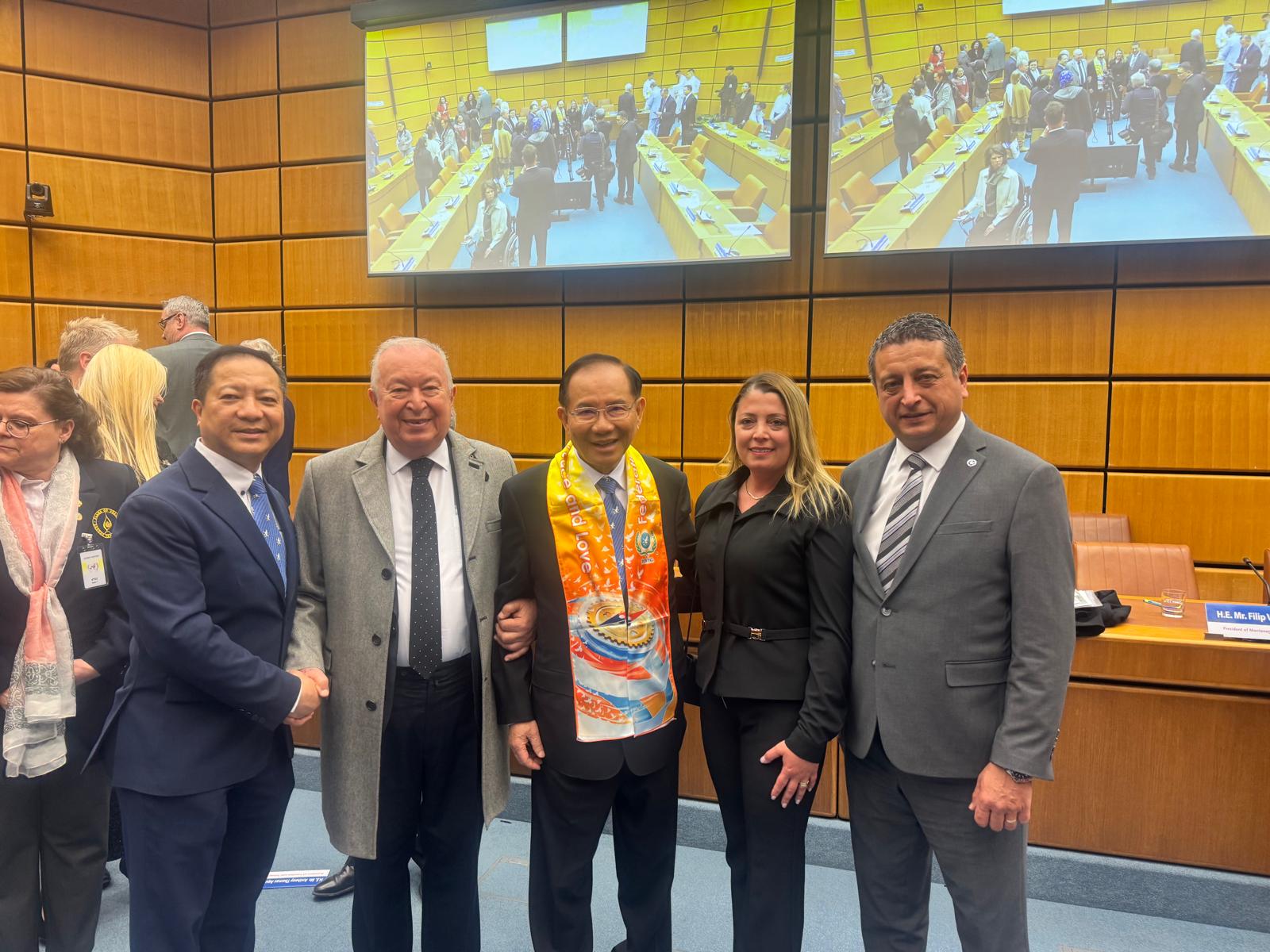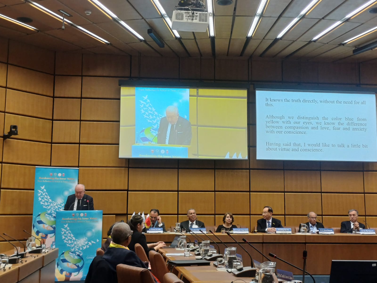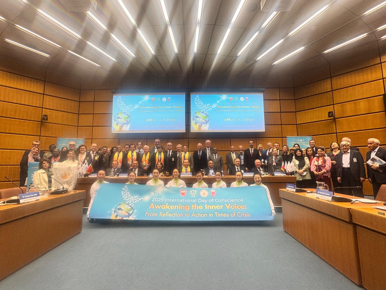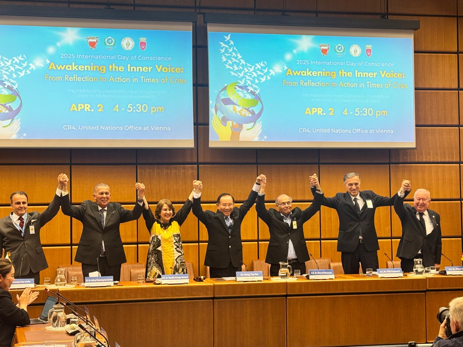 Birleşmiş Milletler Viyana toplantısında FOWPAL Başkanı Dr Hong Tao-Tze, Montenegro önceki Cumhurbaşkanı Filip Vujanovic, Tunus önceki Cumhurbaşkanı Moncef Marzouki, Ekvator önceki Cumhurbaşkanı Rosalia Arteaga Serrano, Trinidad önceki Cumhurbaşkanı Antona Caramona ve Bahreyn Büyükelçisi Jamel Fares Alrowaiei de ayrı ayrı söz alarak Vicdan Günü üzerine konuştular.