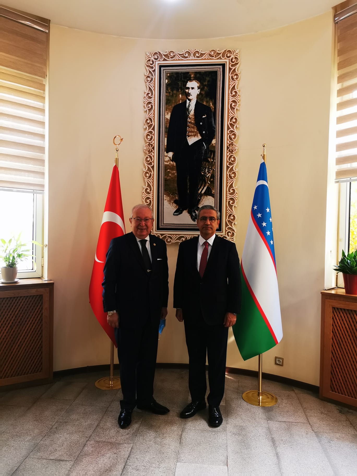 Özbekistan Cumhurbaşkanlığı seçimleri için Taşkent'te bulunan Marmara Grubu Vakfı Genel Başkanı Dr. Akkan Suver seyahatinin son gününde dostlarına teşekkür ve veda ziyaretleri yaptı. Dr. Akkan Suver ilk ziyaretini Türkiye Büyükelçisi Olgan Bekar'a yaptı. Ziyarette Dr. Akkan Suver, Büyükelçi Olgan Bekar'a Taşkent'te bulunduğu süre zarfında gösterdiği yüksek misafirperverlikten dolayı teşekkürlerini sundu.