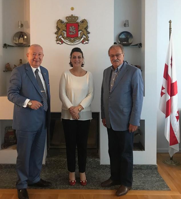 Gürcistan İstanbul Başkonsolosu Inga Kikvadze’yi 22. Avrasya Ekonomi Zirvesi çalışmaları çerçevesinde İstanbul’daki makamında ziyaret eden Dr. Akkan Suver ve Yüksel Çengel bilgi sunumunda bulundular. Ziyarette Dr. Suver 22. Avrasya Ekonomi Zirvesi’nde Gürcistan’ı yüksek seviyede ağırlamaktan mutluluk duyacaklarını belirtti.