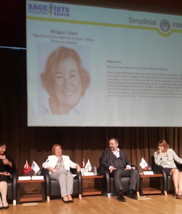 Marmara Grubu Vakfı AB ve İnsan Hakları Platformu Başkanı Müjgan Suver, Türkiye Soroptimist Kulüpleri Federasyonu Etiler Kulübü’nün 30. Kuruluş Yıldönümü kapsamında, çalışma hayatında kadınların farkındalığını güçlendirmek amacıyla 20 Ekim 2018 Cumartesi günü Bahçeşehir Üniversitesi’nde düzenlediği etkinliğe konuşmacı olarak katıldı. “İş ve Toplumsal Yaşamda Cinsiyet Eşitliği" ana başlığıyla düzenlenen sempozyumda Müjgan Suver, “Networking ve Örgütlenmenin Önemi” panelinde Marmara Grubu Vakfı hakkında kısa bir bilgi aktarımının ardından sivil toplum gönüllüsü olma hikayesini paylaştı. Suver, ayrıca Marmara Grubu Vakfı'nın ortak çalışmalar yaptığı örgütler üzerinden kadın temsilinin artırımına yönelik çalışmalarını ve önerilerini paylaştı.