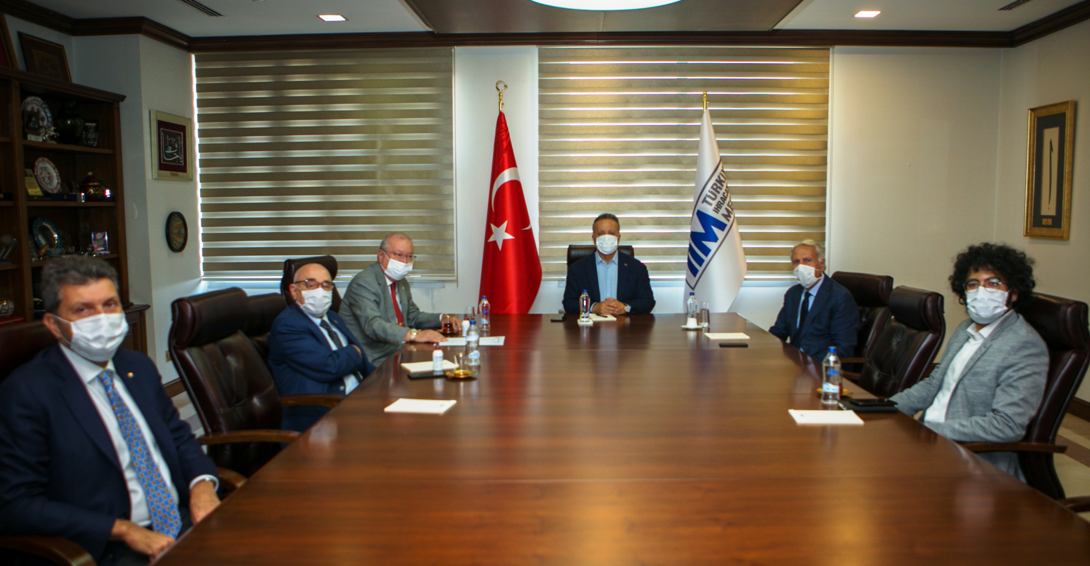 Marmara Grubu Genel Başkanı Dr. Akkan Suver, Başkan Yardımcısı Engin Köklüçınar, Yönetim Kurulu Üyesi Turan Sarıgülle ve Marmara Mütevelli Üyesi Murat Ali Türkiye İhracatçılar Meclisi (TİM) Başkanı İsmail Gülle'yi makamında ziyaret etti.
