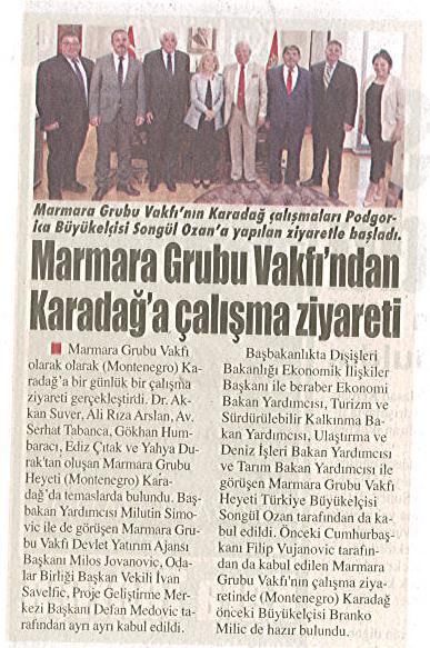 Önceki Cumhurbaşkanı Filip Vujanovic tarafından da kabul edilen Marmara Grubu Vakfı'nın çalışma ziyaretinde (Montenegro) Karadağ önceki Büyükelçisi Branko Milic de hazır bulundu.