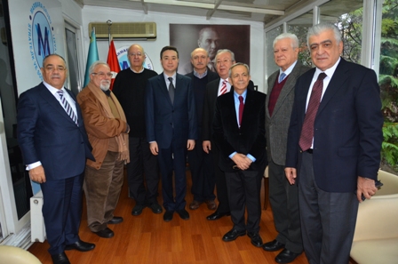 Başkonsolos Yerkebulan Sapiyev’in ziyaretinde Dr. Akkan Suver, Şamil Ayrım, Prof. Dr. Atila Dicle, Prof. Dr. Ersin Kalaycıoğlu, (E) Org. Necdet Timur, Cahit Karakullukçu, Cengiz Güldamlası ve Kenan Akın da hazır bulundu.