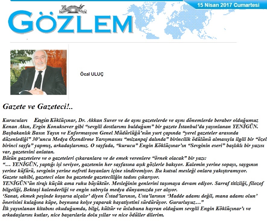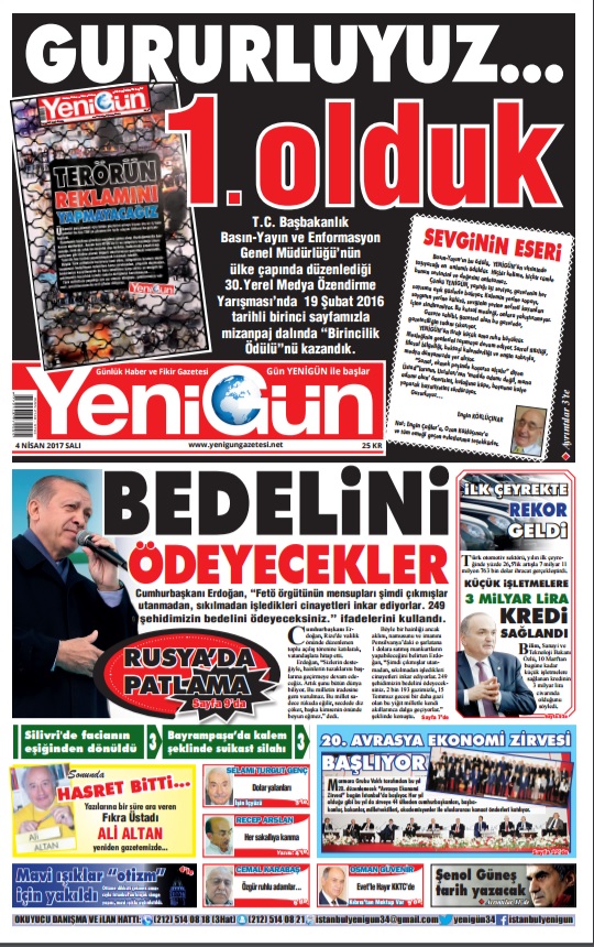 Marmara Grubu Vakfı Genel Başkan Yardımcısı Engin Köklüçınar’ın sahibi olduğu Yenigün Gazetesi Basın Yayın Enformasyon Genel Müdürlüğü’nün sayfa tertibi konusunda açtığı yarışmada birincilik aldı. Marmara Grubu Vakfı Yenigün Yazı Ailesini tebrik eder.