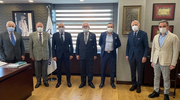 Marmara Grubu Vakfı Genel Başkanı Dr. Akkan Suver, Yüksel Çengel, Cafer Okray ve Turan Sarıgülle ile birlikte İHKİB Başkanı Mustafa Gültepe’yi makamında ziyaret ederek 7-9 Temmuz 2021 günleri gerçekleşecek 24. Avrasya Ekonomi Zirvesi hakkında bilgi sunumunda bulundu.