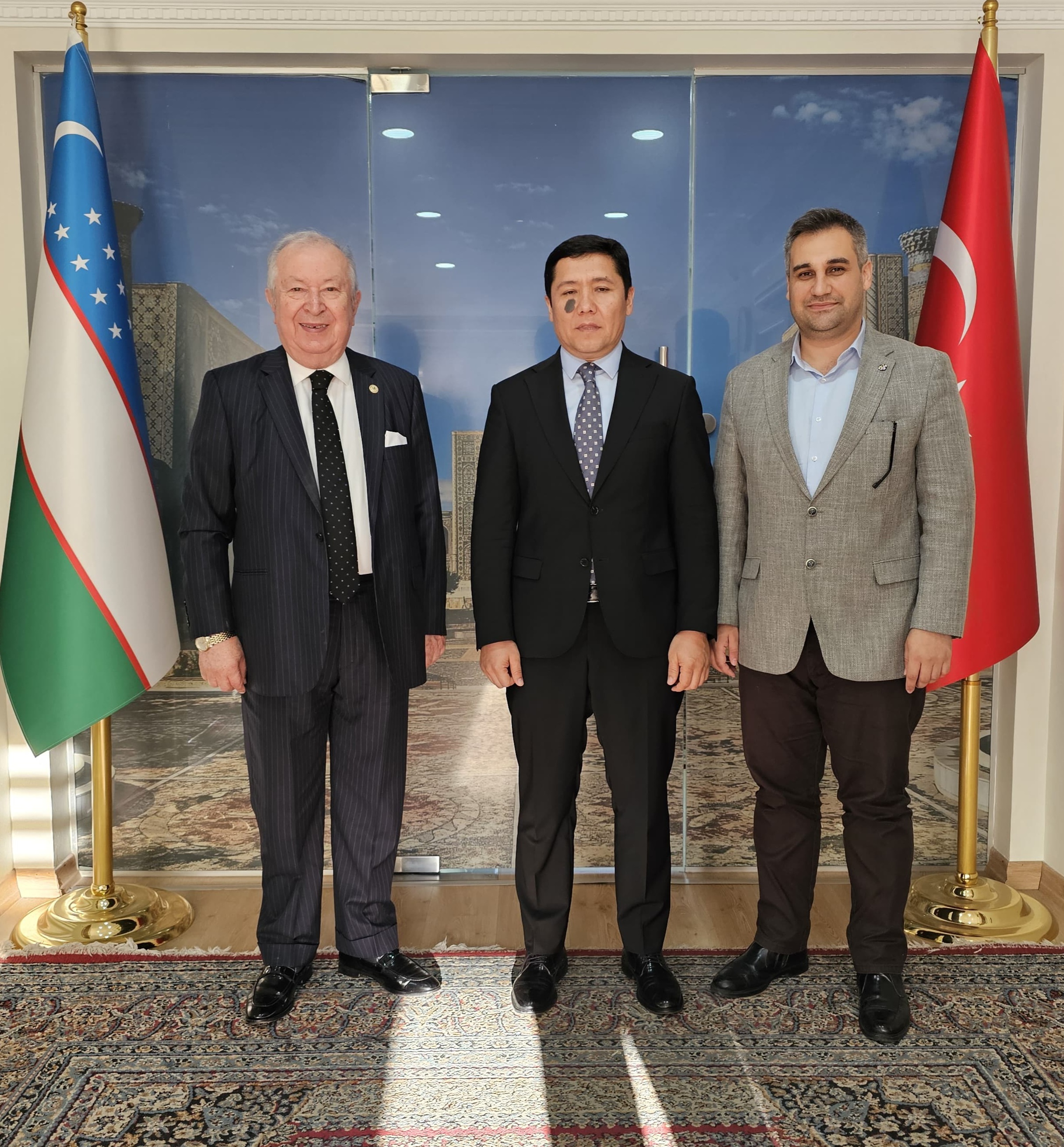 Marmara Grubu Vakfı Genel Başkanı Dr. Akkan Suver ve İcra Konseyi Üyesi Mahmut Saklı Özbekistan seyahati öncesi Özbekistan İstanbul Başkonsolosu Şerzad Abdunazarov'a bir çalışma ziyareti gerçekleştirdi.