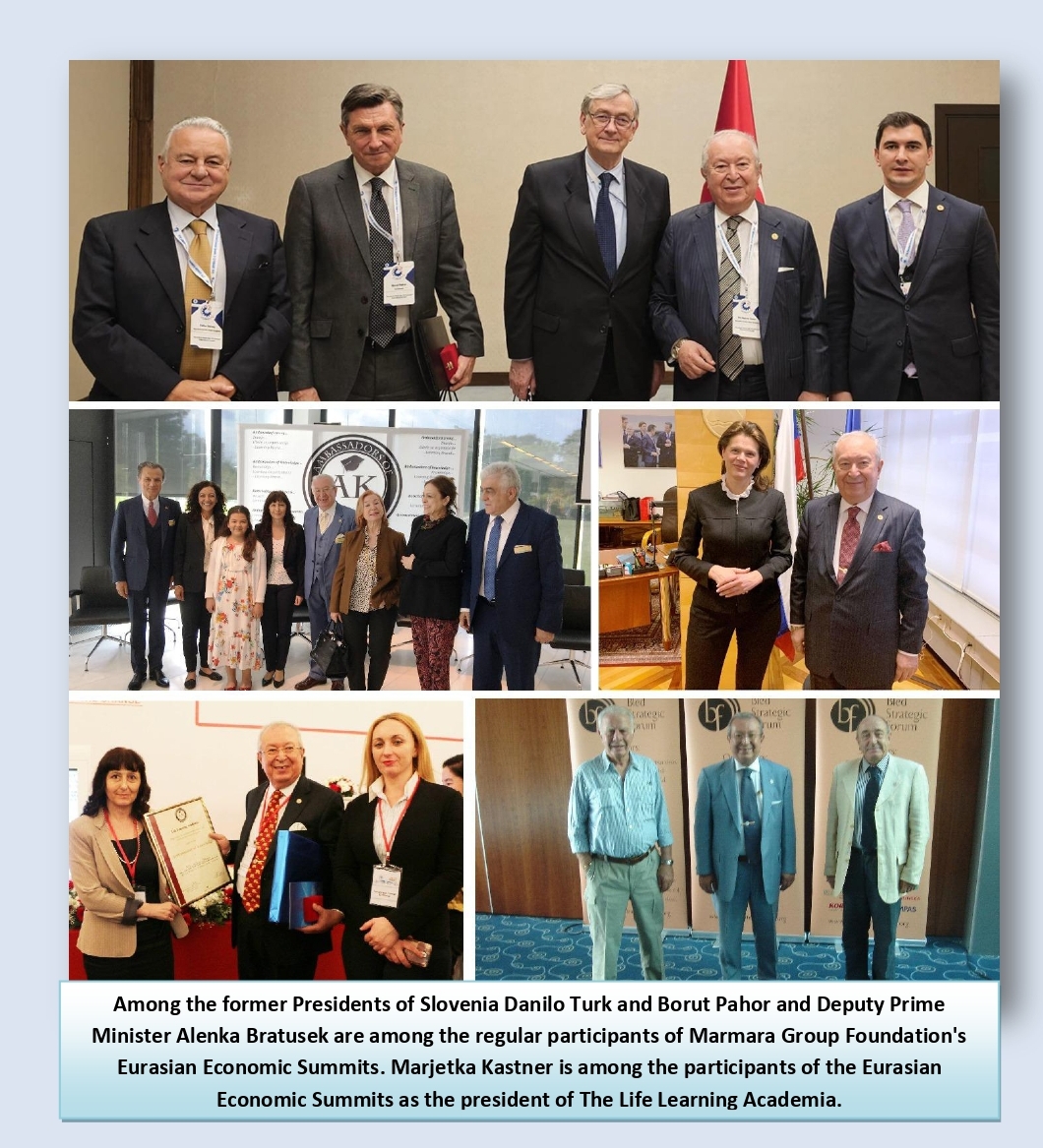 Former Slovenian Presidents Danilo Turk (2007-2012) and Borut Pahor (2012-2022) have always been very supportive of the work of the Marmara Group Foundation and honored the Eurasian Economic Summits. In addition, Slovenian Deputy Prime Minister Alenka Bratušek is one of the important people participating in the work of the Marmara Group Foundation.