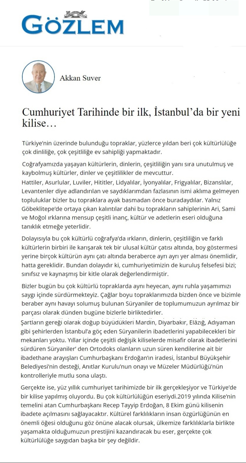 Dr. Akkan Suver'in 22 Ağustos 2023 günü İzmir'de yayınlanan Gözlem Gazetesin'de çıkan makalesi