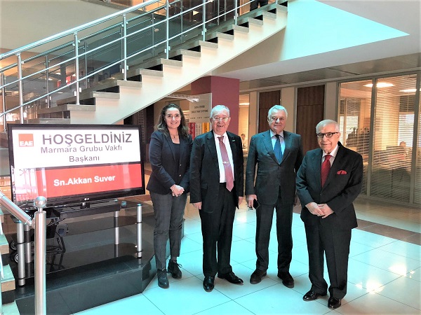 Marmara Grubu Vakfı Genel Başkanı Dr. Akkan Suver, Cafer Okray ile birlikte EAE Tesislerini ziyaret etti. Yönetim Kurulu’ndan Yusuf Hikmet Kaya, Örsçelik Balkan ve Elif Kaya Ok’a Dr. Akkan Suver ve Cafer Okray 22. Avrasya Ekonomi Zirvesi ile ilgili bilgi sunumunda bulundular.
