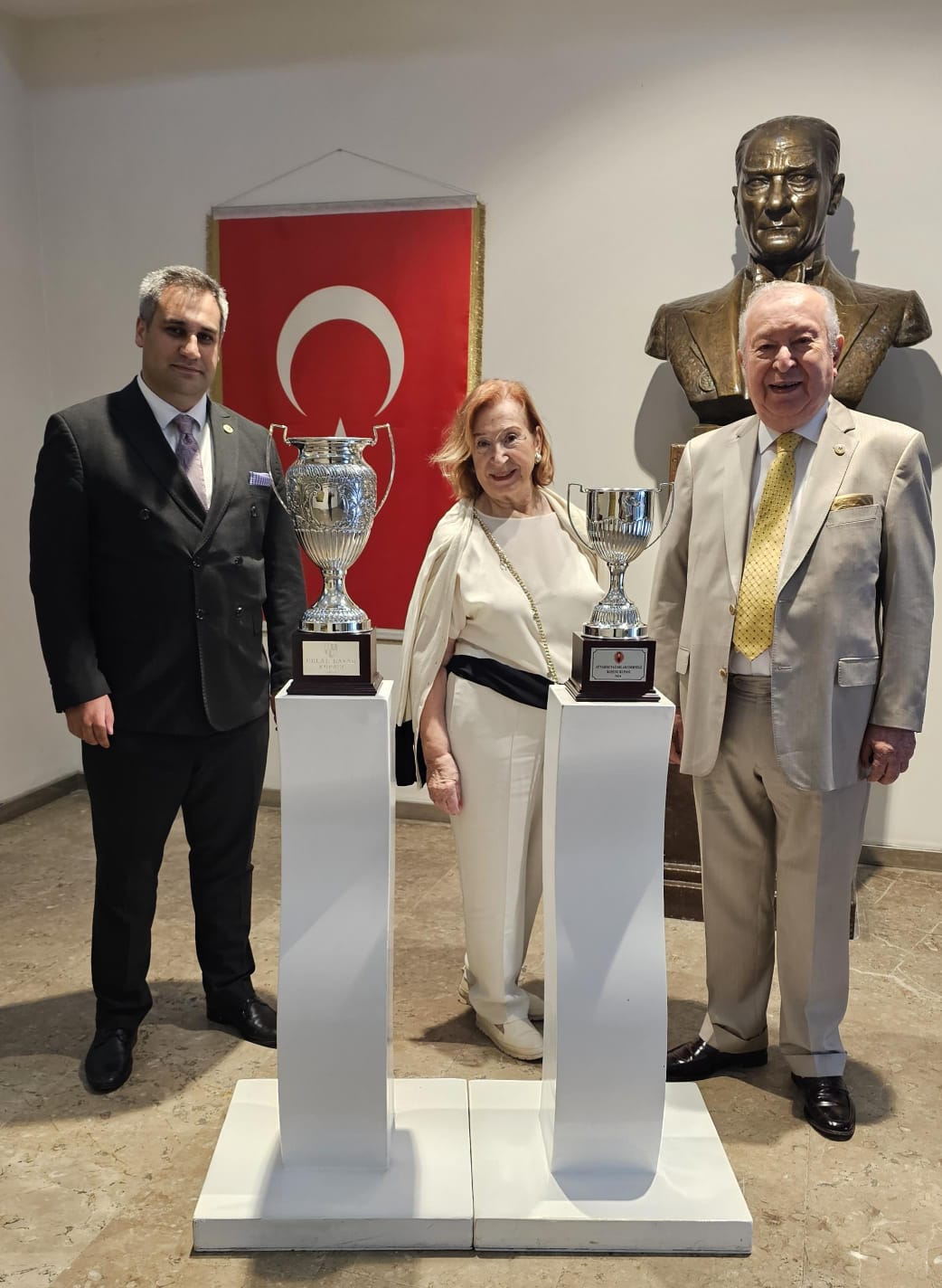 Celal Bayar adına tertiplenen At Yarışı'na Marmara Grubu Vakfı adına Dr. Akkan Suver, Müjgan Suver ve Mahmut Saklı katıldı.