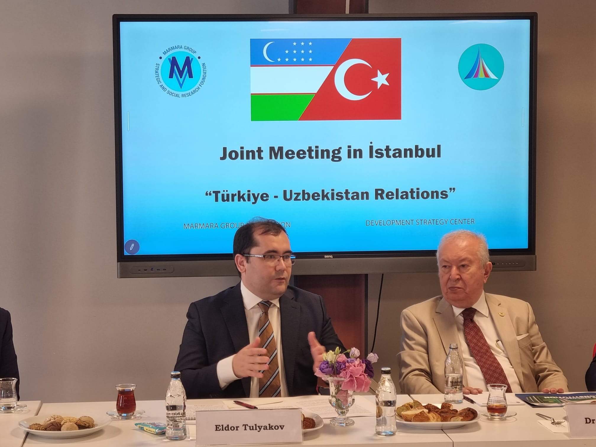 Eldor Tulyakov Başkanlığı’ndaki Özbekistan Strateji Geliştirme Merkezi’nin Furqat Yunusov, Nilufar Doniyorkhodjaeva ve Farrukh Khakimov’dan oluşan heyeti Türkiye – Özbekistan ilişkileri konusunda geniş bir sunum yaptı.