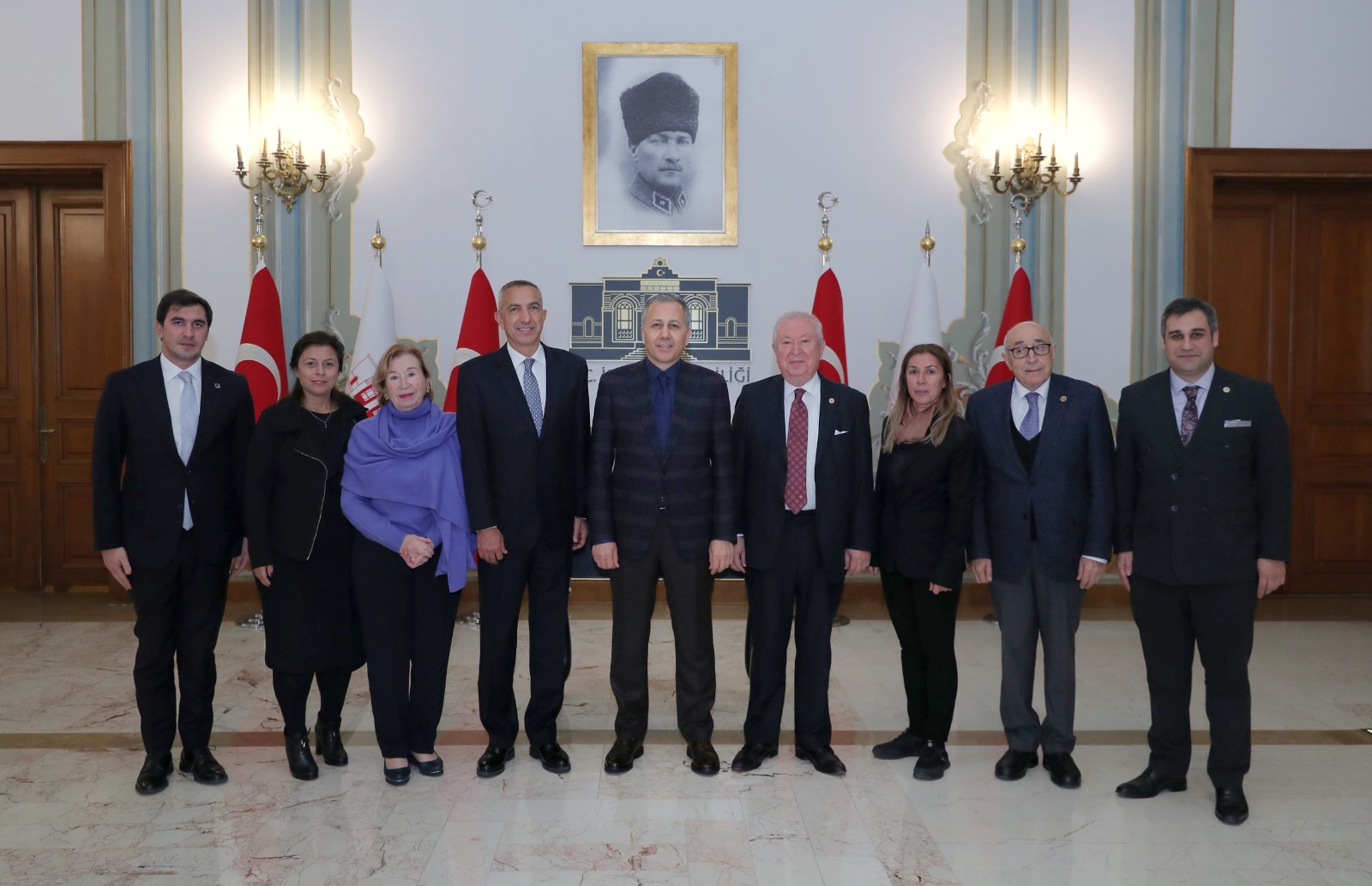 President of the Marmara Group Foundation Dr. Akkan Suver and Members of the Marmara Group Foundation Board of Trustees Engin Köklüçınar, Müjgan Suver, Ahmet Polat, Lale Aytanç Nalbant, Belgin Tanrıverdi, Oğuzhan Ceylan and Mahmut Saklı visited the Governor of Istanbul Ali Yerlikaya in his office within the framework of the work of the 26th Eurasian Economic Summit. Inviting the Governor of Istanbul, Ali Yerlikaya, to the opening of the 26th Eurasian Economic Summit, the Delegation also explained the work of the Summit. The visit ended with the taking of memory photo.