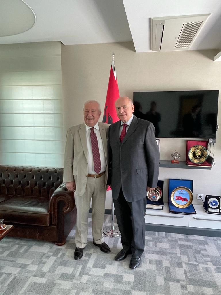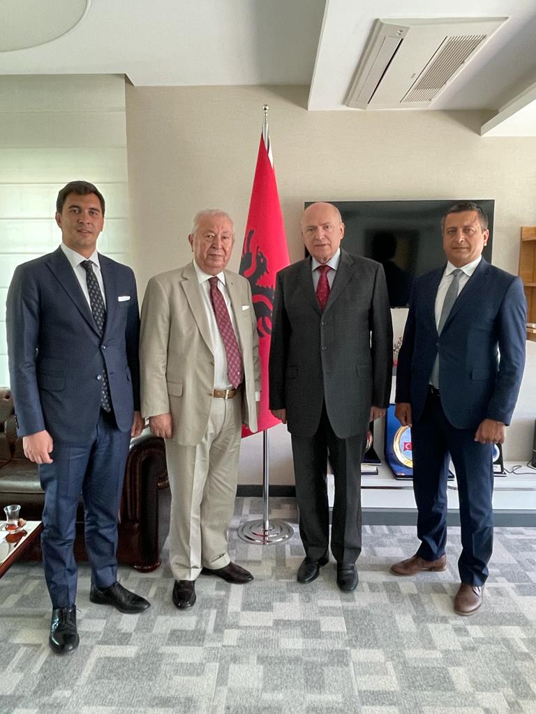 As part of the promotional visits for the 27th Eurasian Economic Summit scheduled for next year, the delegation from the Marmara Group Foundation, consisting of Dr. Akkan Suver, Sezgin Bilgiç, and Oğuzhan Ceylan, visited Ambassador Kastriot Robo at his office.