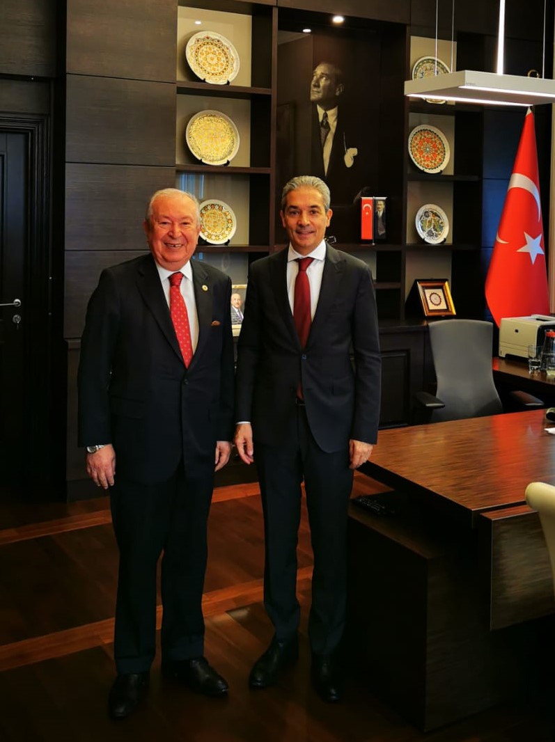 President of the Marmara Group Foundation Dr Akkan Suver on the occasion of the Sixtieth Plenary Session General Assembly of the Parliamentary Assembly of the Black Sea Economic Cooperation Organization which held in Belgrade, visited the Ambassador of Türkiye to Belgrade Hami Aksoy, in his office. During the visit, Dr Akkan Suver made a presentation to Ambassador Hami Aksoy about the 26th Eurasian Economic Summit. Umit Öktem, a Counsellor of the Embassy, was also present during the visit.