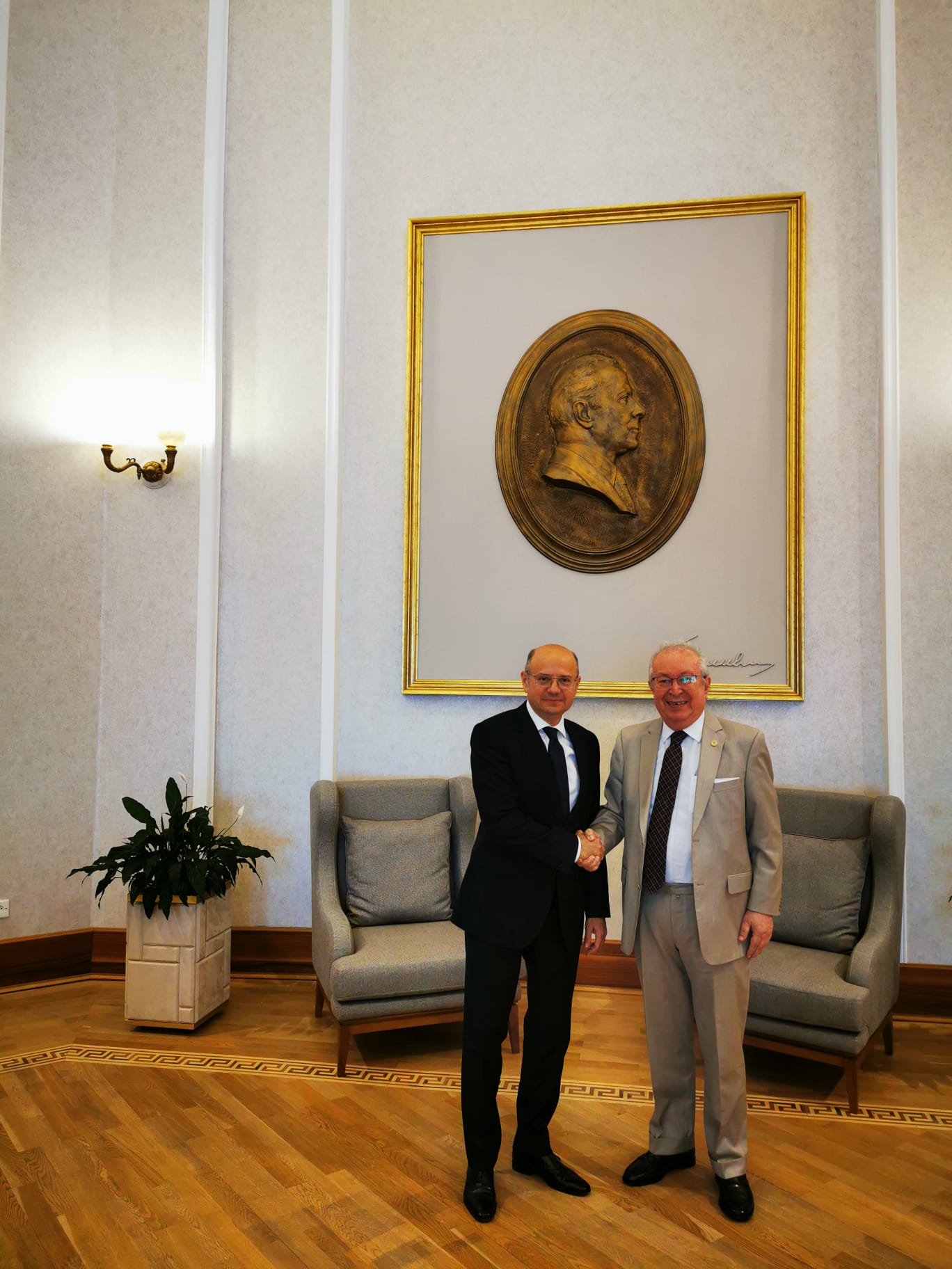 Dr. Akkan Suver made his second visit in Azerbaijan to the Minister of Energy of Azerbaijan Parviz Shahbazov. Dr Akkan Suver informed the Minister of Energy, Parviz Shahbazov, who could not attend the 25th Eurasian Economic Summit, which took place in the past days. Also Dr. Akkan Suver exchanged his views with the Minister of Energy Parviz Shahbazov about the 26th Eurasian Economic Summit that will take place next year.