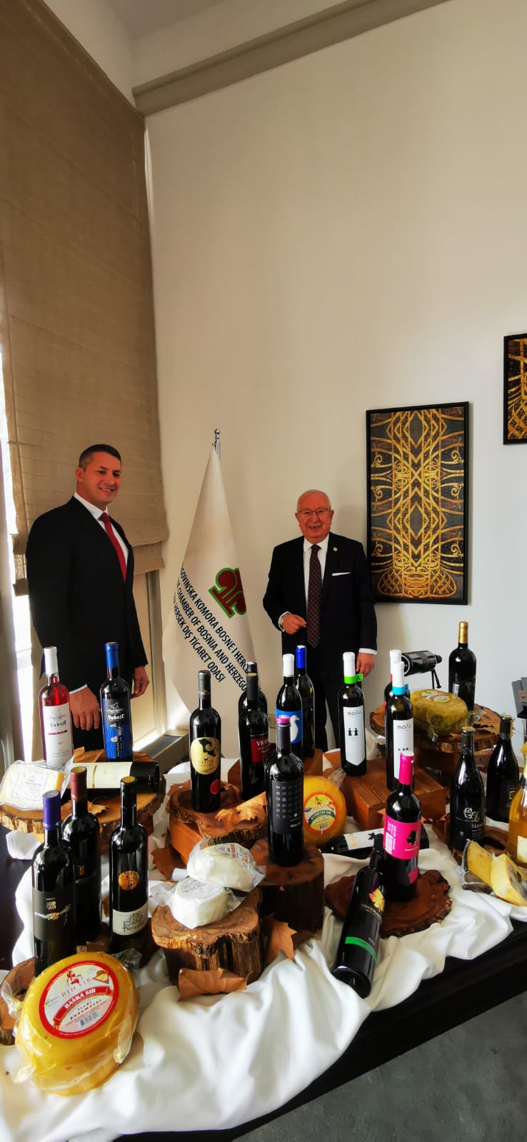 Deputy Chairman of the Union of Chambers and Commodity Exchanges of Bosnia and Herzegovina Vjekoslav Vukovic presented the wine and cheese variaties of Bosnia and Herzegovina by holding a reception at the Conrad Hilton Hotel in Istanbul with Enes Alişkoviç the Representative of the Union of Chambers and Commodity Exchanges of Turkey Cengiz Günay and Consul General of Bosnia and Herzegovina Sinisa Mihailovic. Foreign heads of mission and wine importers in Istanbul attended the Reception. Marmara Group Foundation was represented at the Reception with Dr. Akkan Suver, Cafer Okray, Lale Aytanç Nalbant, Atty. Belgin Tanrıverdi, Engin Köklüçınar, Nigar Sargan, Nimet Ulubay, Mustafa Ergin and Mahmut Saklı.