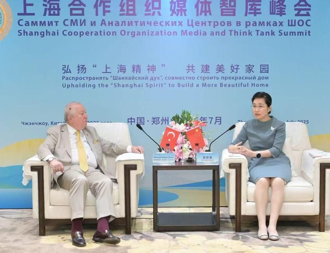 Şangay İş birliği Organizasyonu'nun Media Konferansı münasebetiyle Shenzhou 'da bulunan Marmara Grubu Vakfı Genel Başkanı Dr. Akkan Suver ve Genel Sekreteri Sezgin Bilgiç' i Xinhua Haber Ajansı Başkan Yardımcısı Xi Yanchun kabul etti.